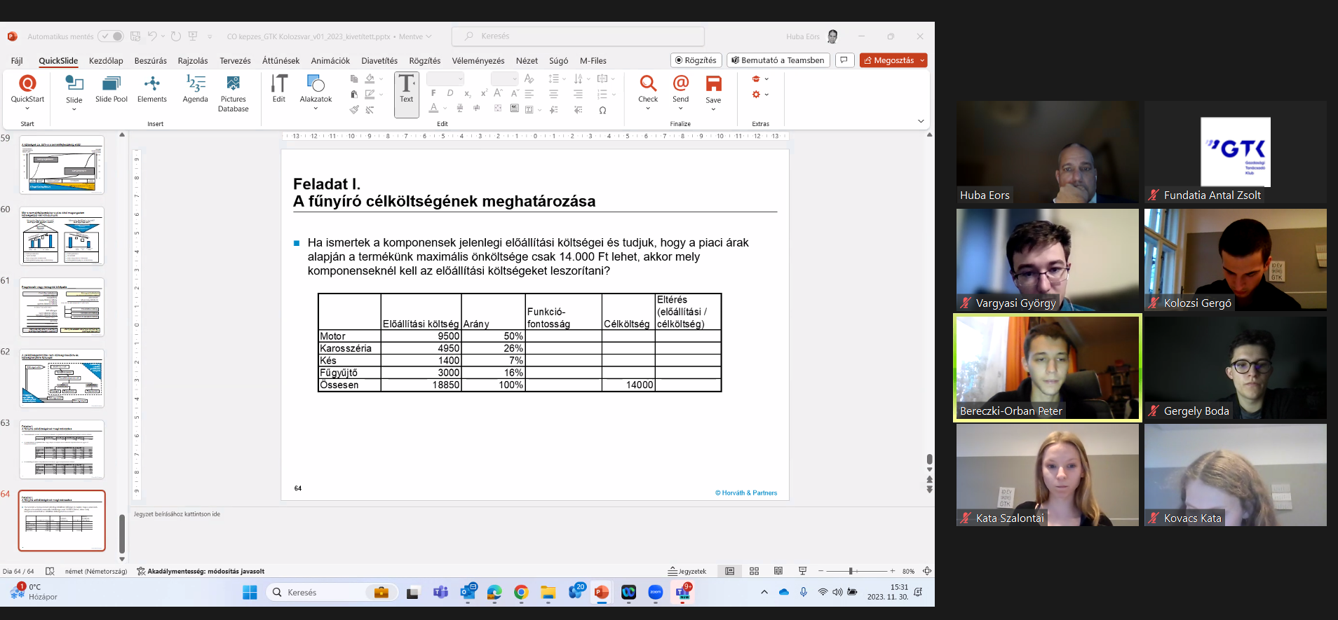 November 30-án sor került az idei év controlling képzésére, amelyen a már megszokottak szerint a másodéves GTK-sok vettek részt és tanultak a képzőtől, Huba Eörstől.