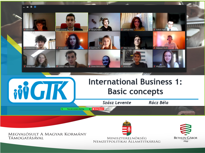 A GTK elsőéves diákjai négy alkalomból és három modulból álló International Business képzéssorozaton vettek részt dr. Szász Levente és dr. Rácz Béla Gergely előadásában. A képzéssorozat átfogó képet adott a fiataloknak a nemzetközi gazdasági folyamatokról, szereplőkről és jelenségekről.