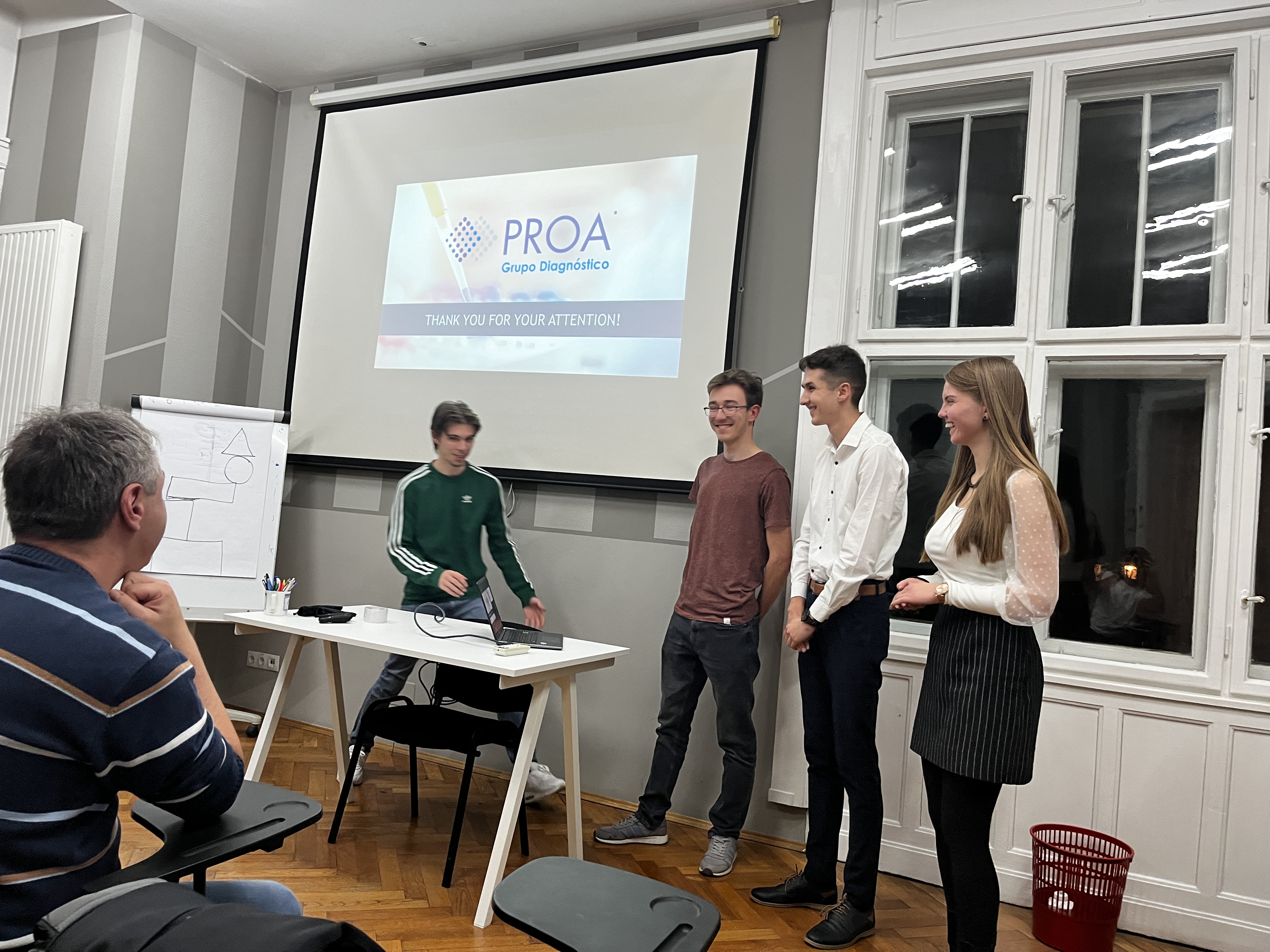 Október 17-én, pénteken zajlott le a GTK idei első belső esettanulmány bemutatása. A diákoknak egy hetük volt megoldani az esettanulmányt, amely a mexikói székhelyű Grupo Diagnostico Proa egészségügyi vizsgálatokkal foglalkozó cég jelenlegi helyzetéről és kihívásairól szólt.