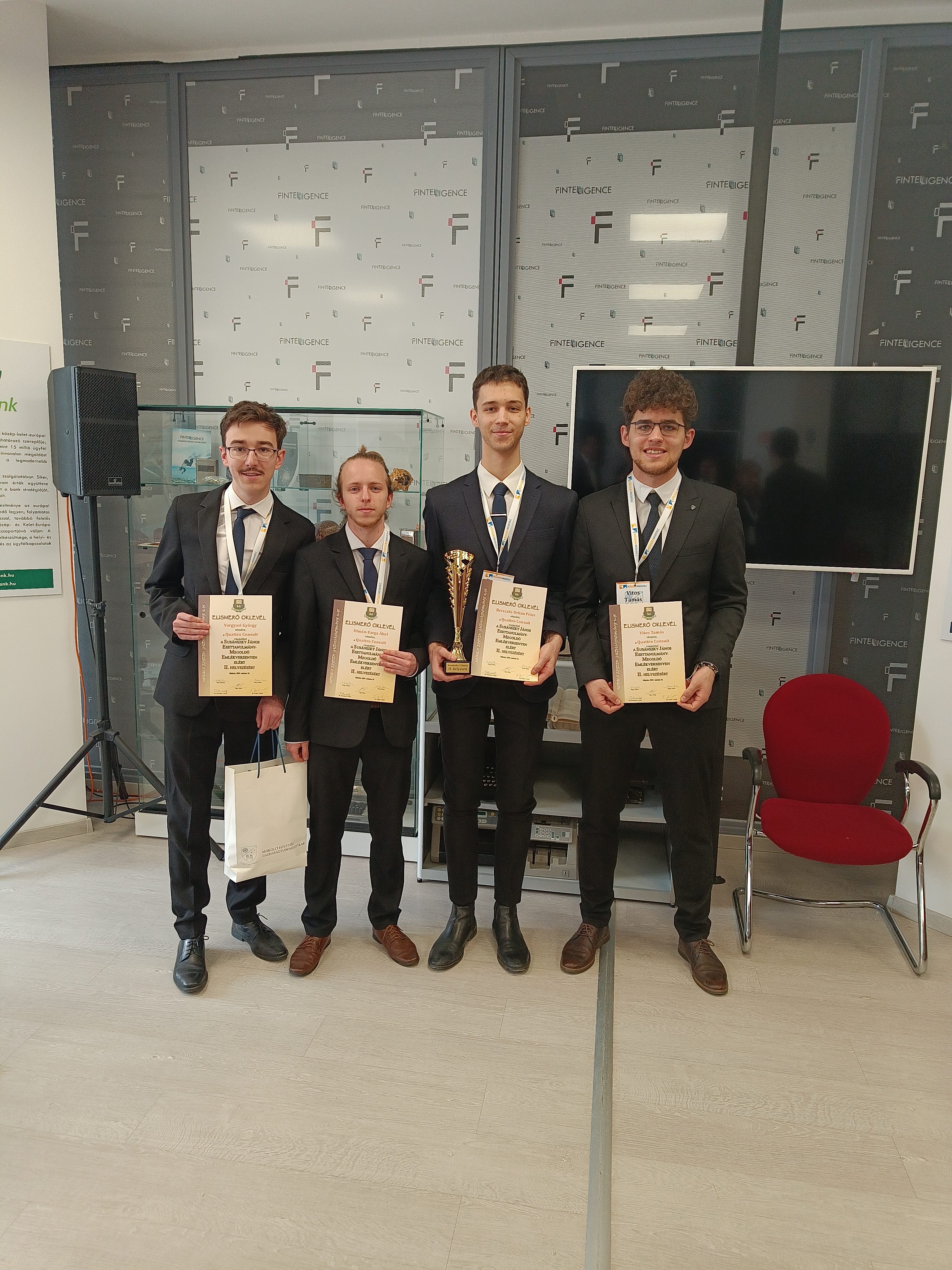 2024. március 21-22. között került megrendezésre a miskolci Susánszky János Esettanulmány Megoldó Emlékverseny, amelyen csapatunk 2. helyezést ért el. A Gazdasági Tanácsadó Klubot 4 diák képviselte a QuattroConsult csapatnév alatt: Bereczki-Orbán Péter (Gazdasági informatika, II. év), Dimén-Varga Ábel (Gazdasági informatika, II. év), Vargyasi György (Pénzügy és Bank, II. év) és Vitos Tamás (Gazdasági informatika, II. év).