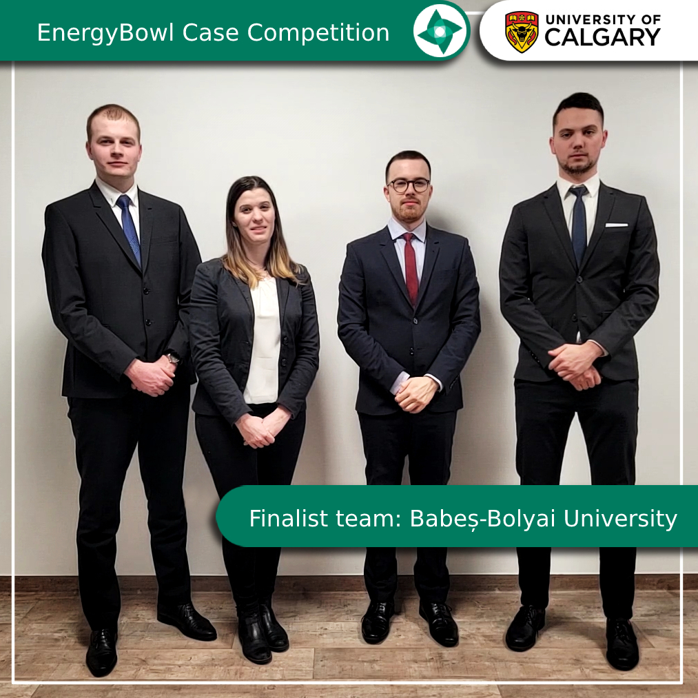 Between the 22nd and 25th of January 2021 a team of four master’s students from the Babeș-Bolyai Univerity of Cluj-Napoca and the GTK – Business Consulting Club qualified into the finals of an international case competition held by the Canadian University of Calgary and other organizations. This remarkable performance granted the team the possibility to compete with 9 other international teams and to present their solution at the „2021 EnergyBowl Case Competition” organized within the 10th Annual Alberta Student Energy Conference. The final round will take place virtually between 17th and 18th of February 2021.
