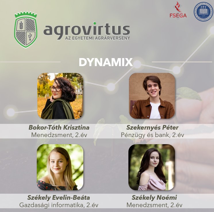 During the competition, the competitors had to react to the five problems of one real, operating agricultural company. At the beginning of each round, the teams had to find a solution for the given company with the help of the provided parameters, production data and the formulated agricultural or management problem, which had to be uploaded to the AgroVIR system. The competition was attended by 110 teams, including the Dynamix team representing Babeș-Bolyai University with the members: Székely Evelin Beáta (2nd year, Business Information Systems), Székely Noémi Cecília (2nd year, Management), Bokor-Tóth Krisztina (2nd year, Management). year), and Szekernyés Péter (2nd year, Finance and Banking). The team advisors were dr. Györfy Lehel-Zoltán, dr. Szász Levente and dr. Rácz Béla-Gergely.