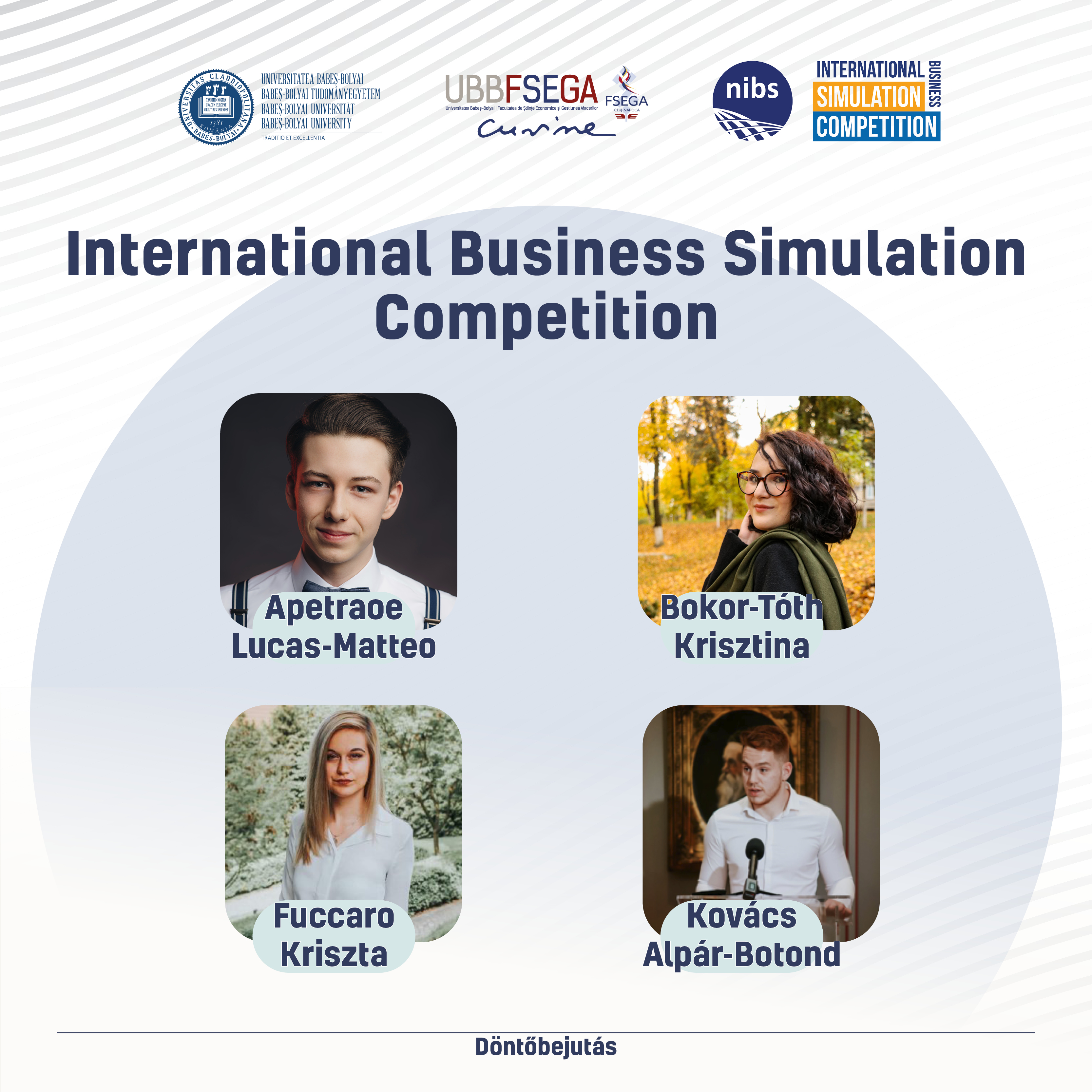 Competiția Internațională de Simulare a Afacerilor organizată de NIBS (Rețeaua Școlilor Internaționale de Afaceri) a avut loc între 9 noiembrie 2021. și 10 decembrie 2021   într-o formă online, unde UBB a fost reprezentată de o echipă de patru membrii GTK: Apetroae Lucas-Matteo (Informatică economica, anul 3.), Krisztina Bokor-Tóth (Management, anul 3.), Kriszta Fuccaro (Management, anul 3.), Alpár-Botond Kovács (Managemetn, anul 3.).  Competiția a fost specială și instructivă din mai multe puncte de vedere: au avut ocazia să simuleze managementul unei companii de tehnologie virtuală care produce telefoane, tablete și laptopuri.  Competiția a constat din trei runde: o calificare, o semifinală și o finală, în cadrul cărora fiecare rundă era compusă din 4 perioade de decizie.  La competiție au participat în total 30 de echipe, dintre care 10 echipe au avut ocazia să intre în finală.  Echipa GTK a ajuns în finală. În măsurarea performanței au fost importante indicele de performanță, care au fost alcătuite din mai mulți indicatori, printre care profitul acumulat, indicele de satisfacție a clienților și indicele mediu de satisfacție a angajaților.  Simularea a fost o mare oportunitate de a exersa cunoștințele teoretice în rolul unui manager.  Un fapt interesant al competiției a fost că echipele de pe podium au avut oportunitatea de a alege o organizație non-guvernamentală căreia i s-a oferit un anumit procent din taxa de înscriere la concurs.
