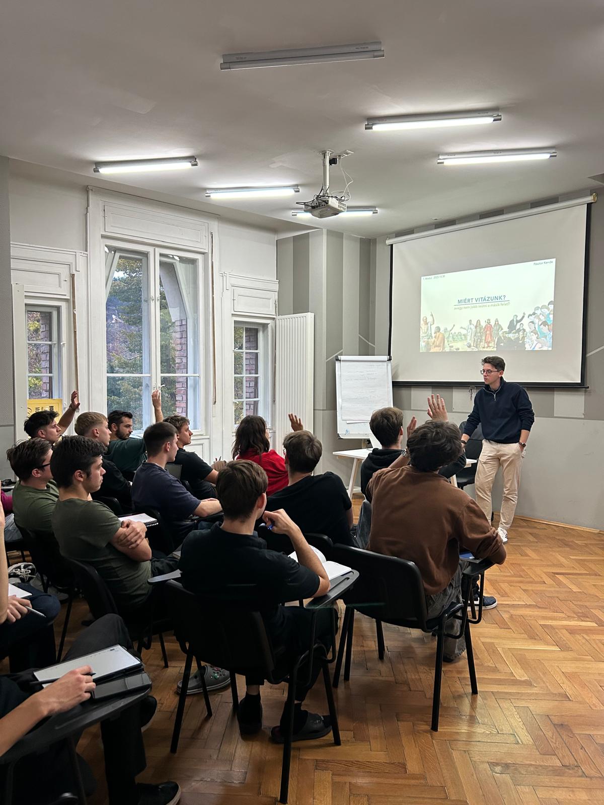 În primul semestru, membrii Clubului de Consultanță în Afaceri GTK au participat la trei sesiuni de formare în dezbatere, susținute și anul acesta de Pásztor Kende, membru alumni al clubului. Scopul acestor sesiuni a fost dezvoltarea abilităților de argumentare și persuasiune, recunoașterea erorilor logice, stimularea gândirii critice, precum și însușirea practică a diferitelor formate de dezbatere și tehnici de prezentare.