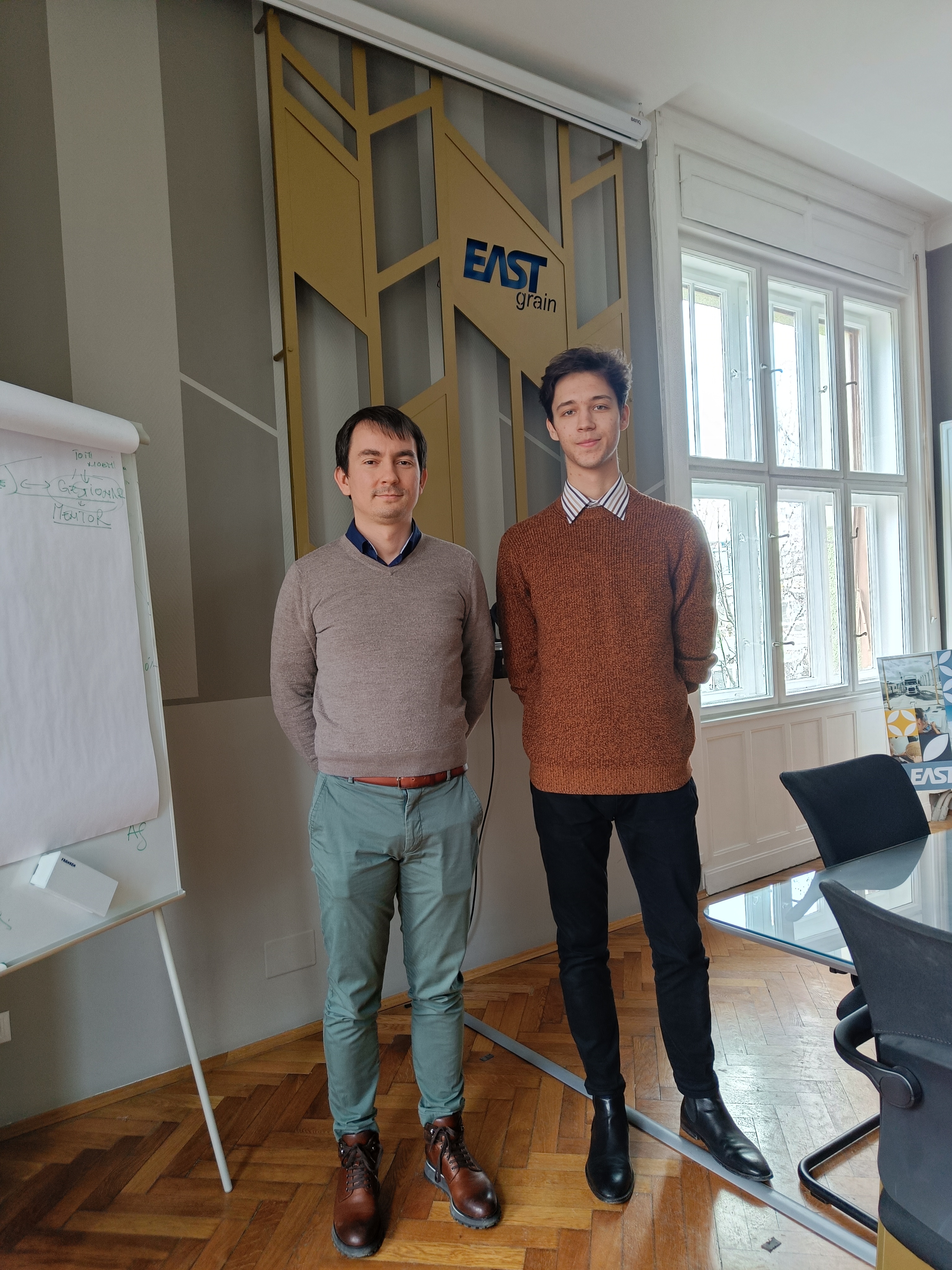 Ziua mea a început la ora 9 dimineața, la sediul companiei East Grain din Cluj Napoca. După o cafea rapidă de dimineață, programul a început imediat. Tamás, în biroul lui, a făcut mai întâi o prezentare amănunțită a grupului, a activităților sale și a filialelor sale. După aceea, am aflat despre rorurile angajaților în cadrul companiei. În jurul prânzului, am mers în biroul de alături pentru a observa viața de zi cu zi a câtorva angajați. Aici am învățat despre tranzacțiile bursiere, contracte și mulți alți termeni profesioniști care nu au fost clari la prima, dar până la sfârșitul zilei am reușit să îi înțeleg. Ziua s-a încheiat cu un prânz, în timpul căruia am primit și alte sfaturi utile despre metodele de management.